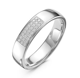 Кольцо изготовлено из белого золота 585 пробы, на классической шинке, в центальной части которой, в разрезке в виде прямоугольника, закреплены 27 бриллиантов27 Кр 57 0,149 ct 3/5 А (400-200).