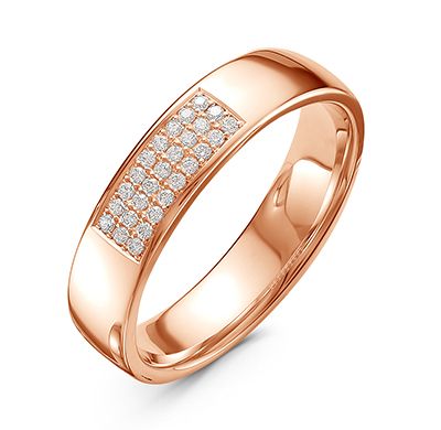 Кольцо изготовлено из красного золота 585 пробы, на классической шинке, в центальной части которой, в разрезке в виде прямоугольника, закреплены 27 бриллиантов27 Кр 57 0,149 ct 3/5 А (400-200).